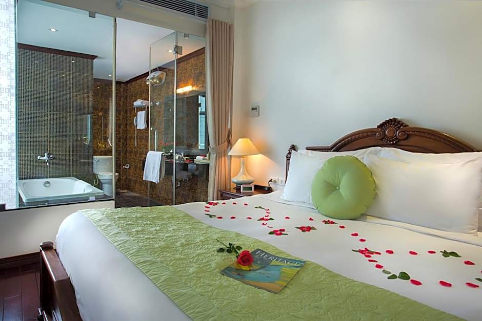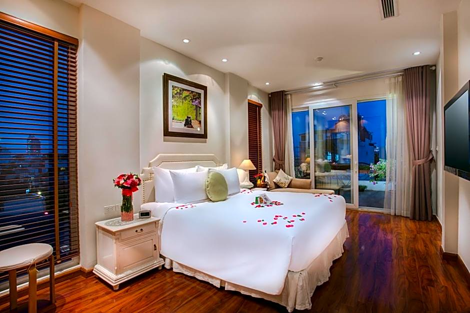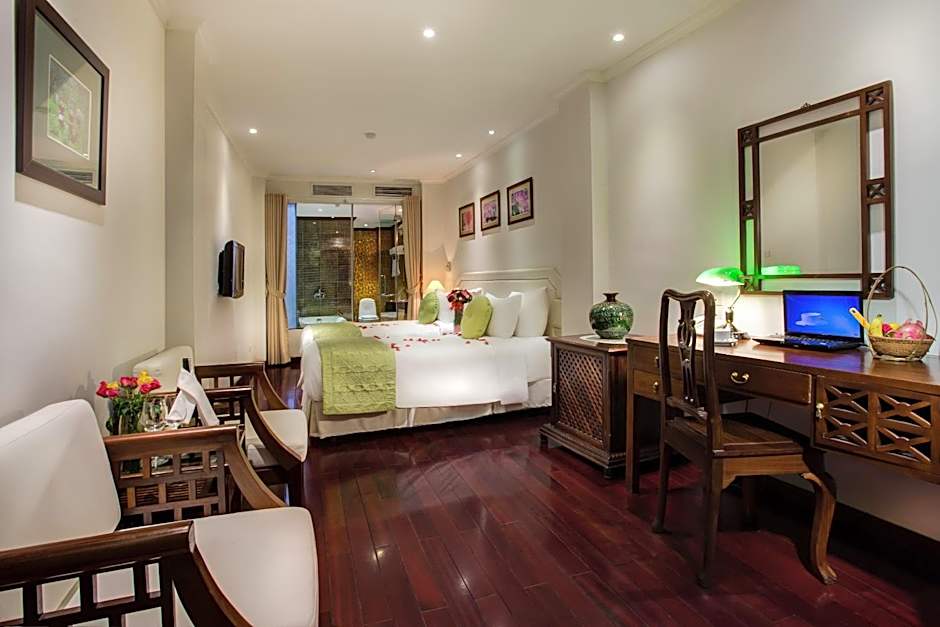 Located on the top floors, these spacious and luxuriously beautiful suites come with views of the Old Quarter. They are fully-equipped with a flat-screen TV, a laptop and a mini-bar. The stylish private bathroom has either a bathtub or standing shower. Select suites include a private balcony and separate seating area.